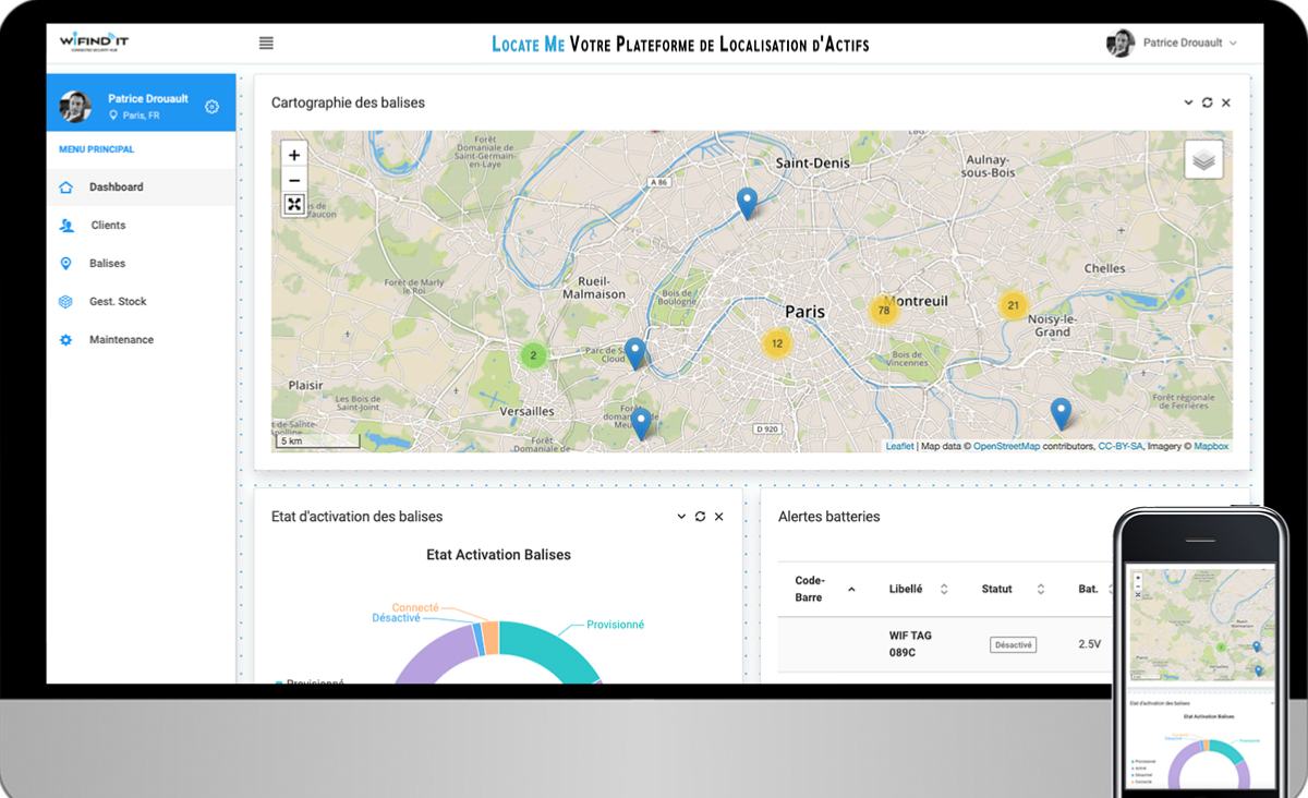 WIFIND'IT : La 1ère valise de sécurité connectéeNe cherchez plus votre matériel, retrouvez le ! A la difference des GPS qui ne fonctionnent que si vos actifs sont à l'extérieur de bâtiments, Wifind'it innove en lançant la première balise connectée au réseau Internet des Objets, avec une précision de localisation intérieure et extérieure, inégalée à 20 cm près, sur tout le territoire national. L'OFFRE WIFIND'IT