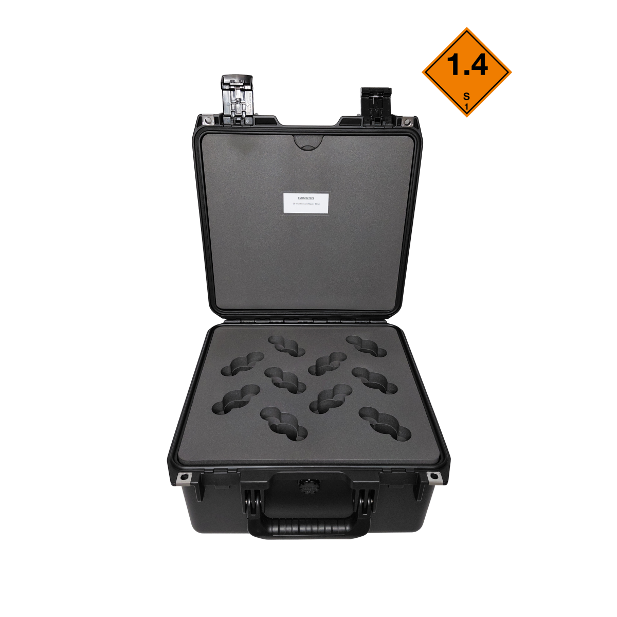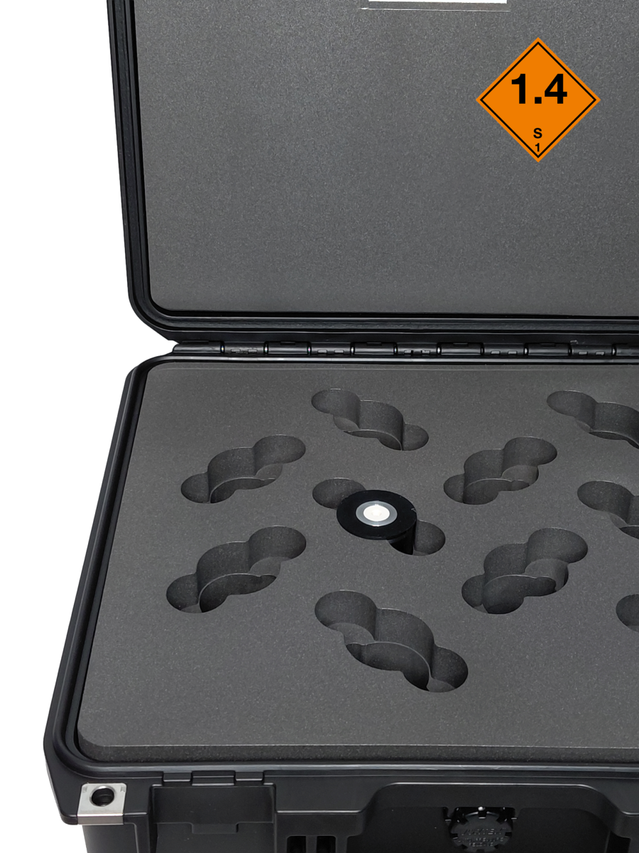 Valise Peli™ IM2275 avec usinage de mousse pour 10 munitions cinétique 40mm. Réduit la classe de risque ONU de1.1B à 1.4S, améliorant ainsi la sécurité du personnel lors du stockage et du transport de grenades. La caisse IM2275P2 de Cirra Packaging offre une protection renforcée pour le transport sécurisé de grenades grâce à sa coque rigide, sa fermeture sécurisée et son calage interne personnalisable.