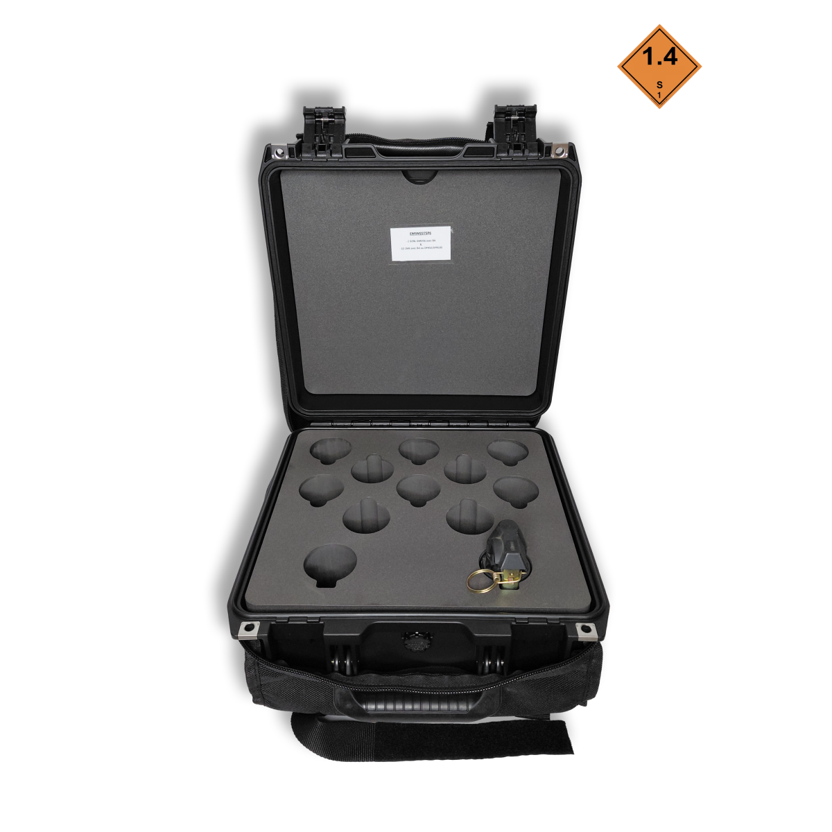Valise Peli™ IM2275 avec usinage de mousse pour 2 GR GENL/GMD avec BAM et 10 CM6 avec BAM et /ou DPR50 et DPR100. Réduit la classe de risque ONU de1.1B à 1.4S, améliorant ainsi la sécurité du personnel lors du stockage et du transport de grenades. La IM2275P6 de Cirra Packaging est une caisse de transport ultra-renforcée, grande capacité, avec fermeture multi-points et mousse personnalisable, conçue pour le transport sécurisé de grenades.