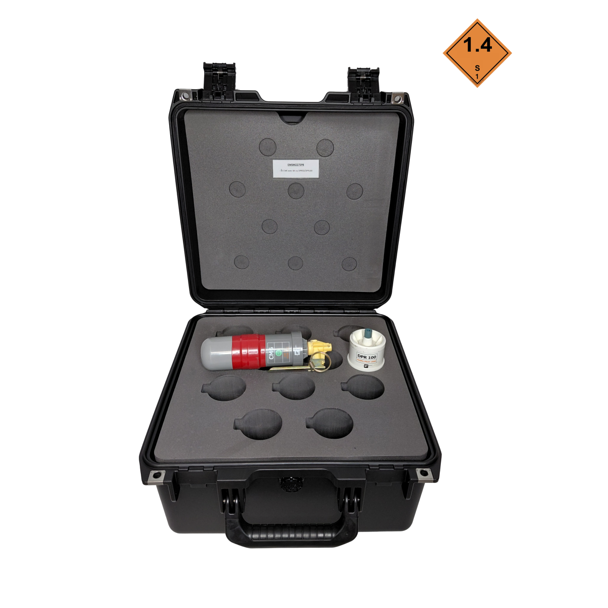 Valise Peli™ IM2275 avec usinage de mousse pour 10 GR 56mm CM6 avec BAM et /ou DPR50 et DPR100. Réduit la classe de risque ONU de1.1B à 1.4S, améliorant ainsi la sécurité du personnel lors du stockage et du transport de grenades. La caisse IM2275P8 est une caisse de transport grande capacité ultra-renforcée, étanche et équipée d’un calage sur mesure, conçue par Cirra Packaging pour le transport sécurisé de grenades et matériels pyrotechniques.